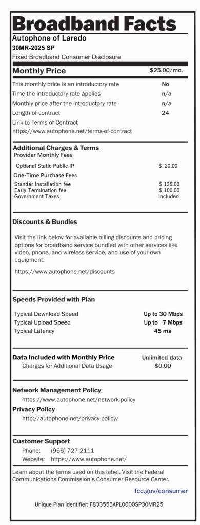 To access the machine-readable version of the Autophone Broadband Label, click the link below: